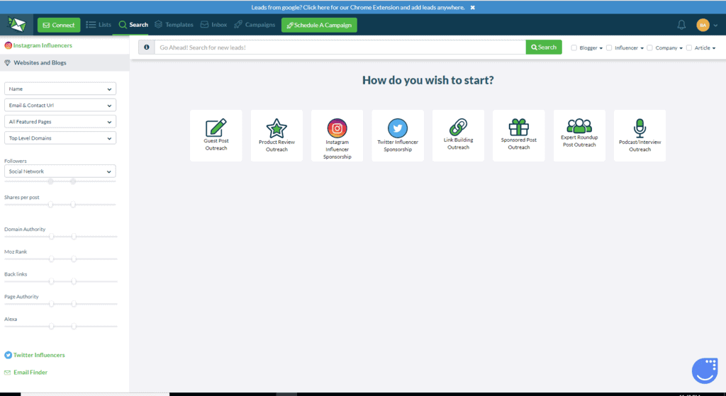 Let's see how you can do prospecting in Ninja Outreach.