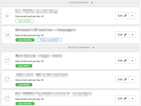 After you have launched a campaign you can see your Campaigns and their status in Campaigns section.