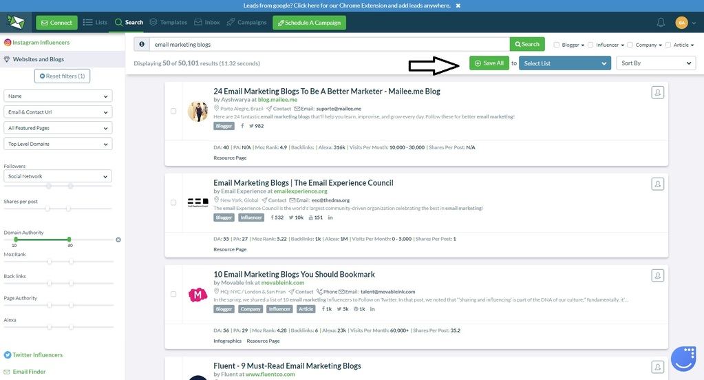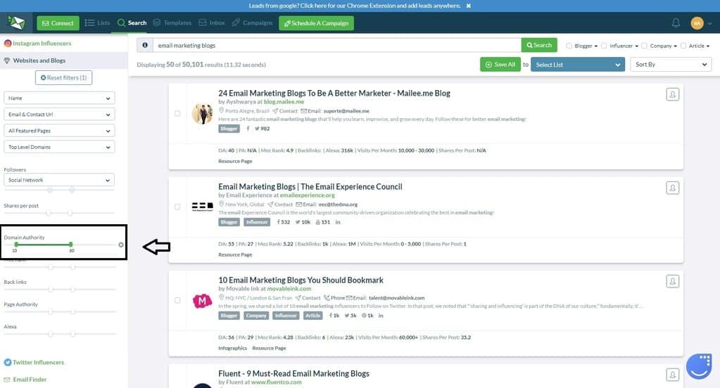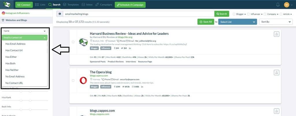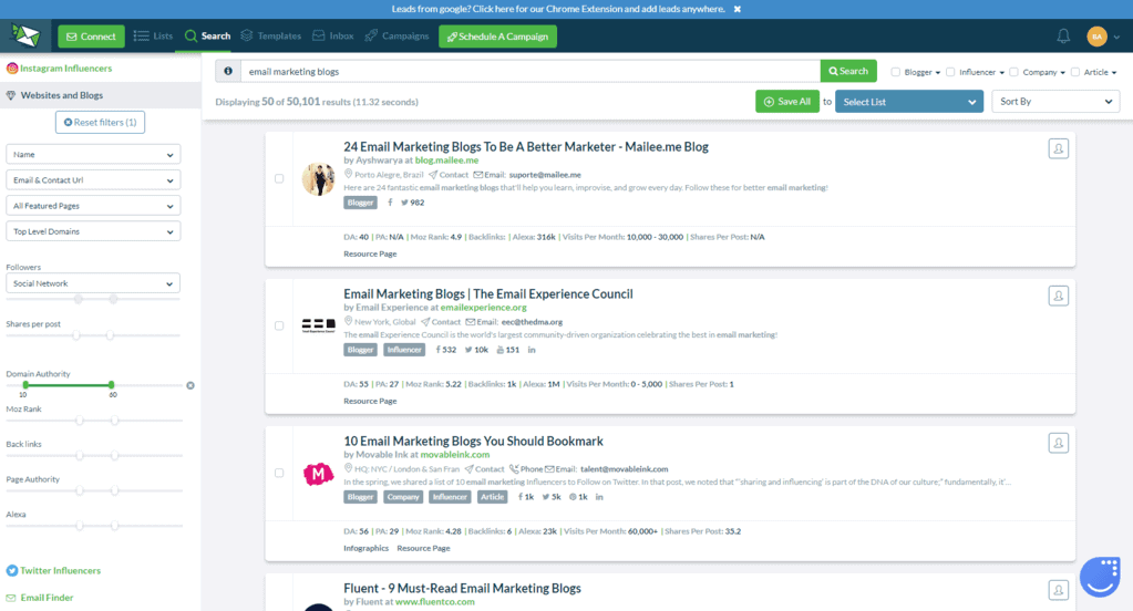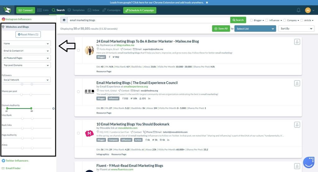 But Ninja Outreach is here to help, it has a lot of filters which can help you filter from these search results.