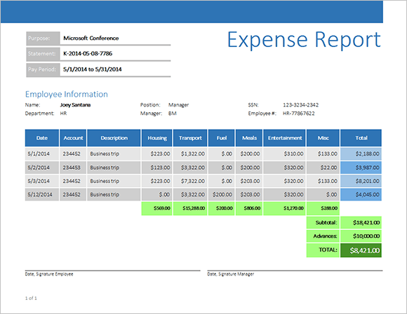 Expense report example